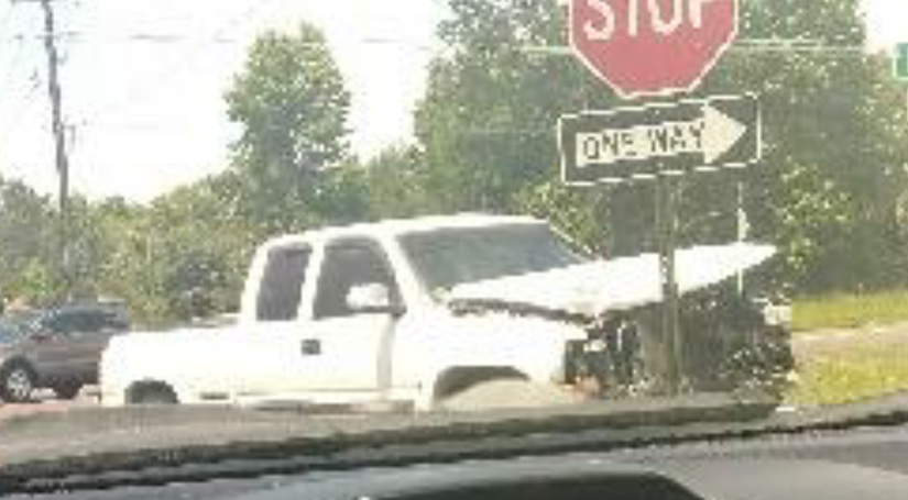 The driver of a white extended cab pickup truck (pictured above) collided with a Dodge Ram 1500 on Highway 29 near North Tate School Road. The female driver of the white pickup stopped long enough to speak to the elderly driver of the black pickup, according to bystanders . Then a man help her put the hood back on the truck before he jumped in the driver’s seat and she got into the front passenger seat before fleeing the scene, witness said.