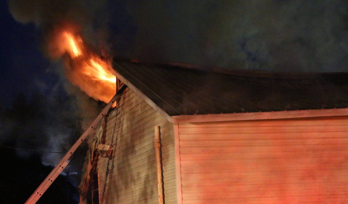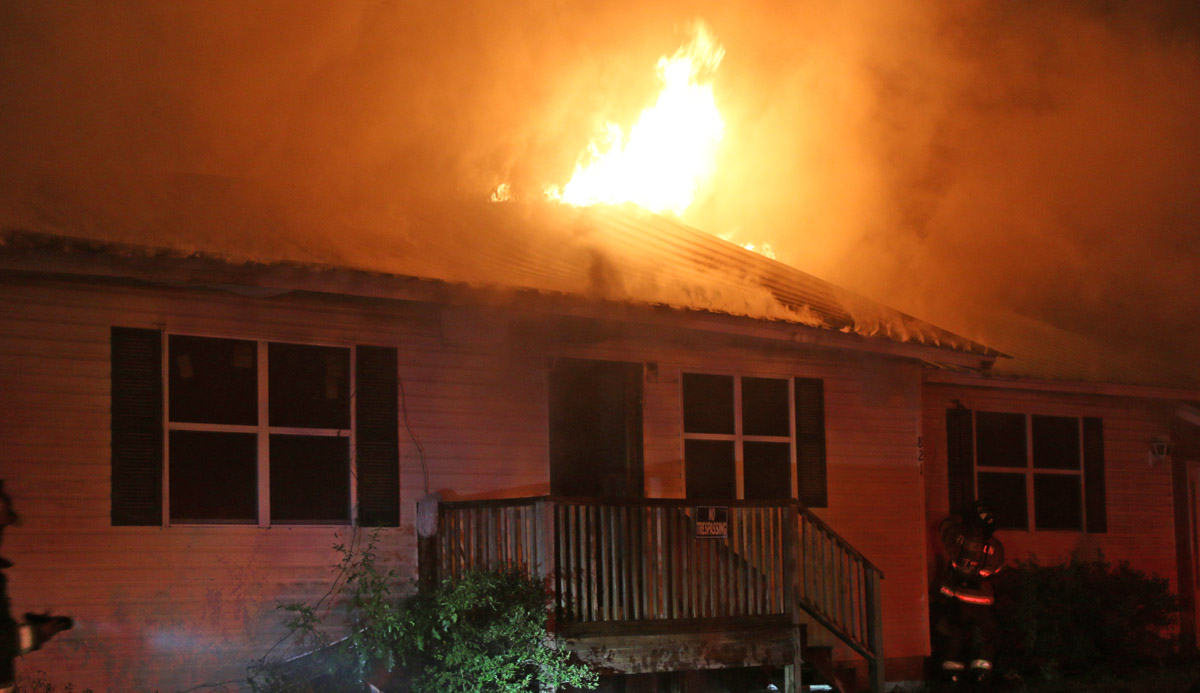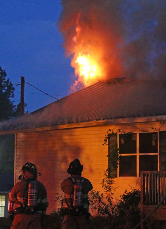 Neighbors reported seeing flames from the roof of the home in the 800 block of Freedom Road just before 8 p.m. Heavy smoke was showing when the first firefighters arrived on scene moments later.