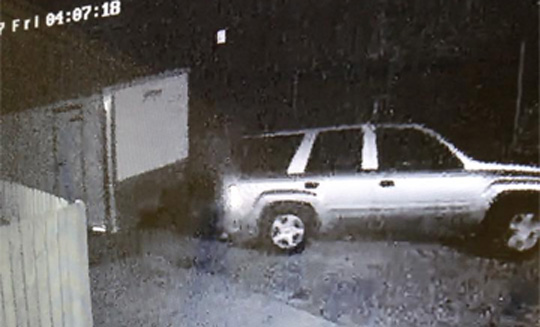The job was captured on surveillance cameras along with images of the pictured Chevrolet Trailblazer. The vehicle was last seen leaving the lot and heading north on Rebel Road.