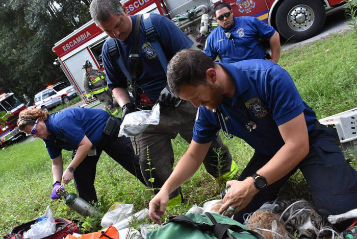 Multiple family pets died during a house fire in Cantonment Monday afternoon, while firefighters and EMS were able to save several animals.