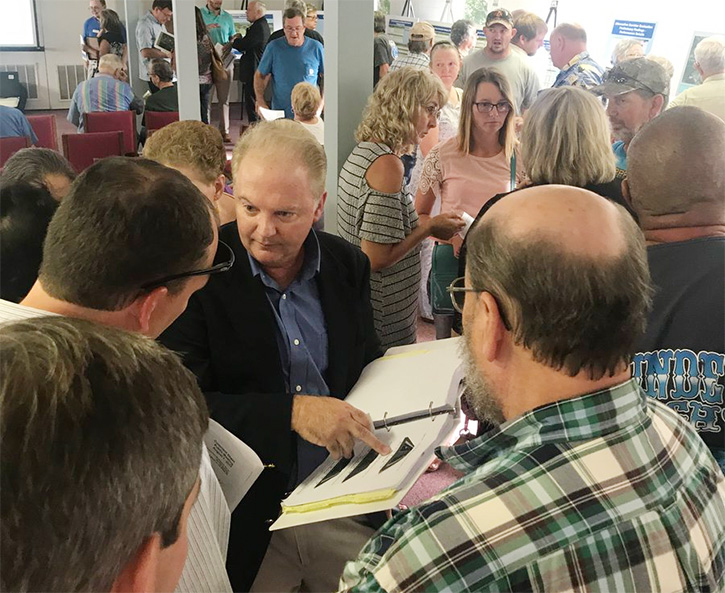 The meeting was held in a room at the Plainview Baptist Church on West Nine Mile Road that quickly became overcrowded, prompting county officials to announce that another meeting will be scheduled in the coming days at a larger venue.