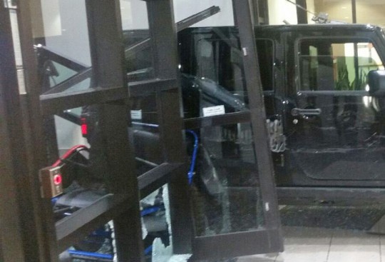 Pictured: A Cantonment man crashed his Jeep into the Sacred Heart Emergency Room early Thursday morning in what police are calling a domestic violence incident. Photos courtesy WEAR 3 for NorthEscambia.com, click to enlarge.