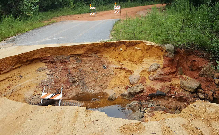 Carnley Road near Century has washed out again just south of the Florida/Alabama state line and is closed. Repairs are expected early next week. The road also washed out in late June. Carnley Road is a short roadway just northeast of Century, between Fannie Road in Florida and Old Fannie Road in Alabama. Reader submitted photos by Cody Fowler for NorthEscambia.com, click to enlarge.