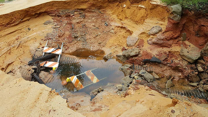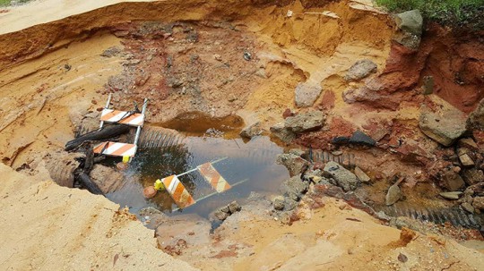 This comment is towards the last one that was made.the road leads out to go thru and go put by the old air products plant it is use all the time so needless to say if they would fix the problem instead of patching it with sand and not doing nothing to fix the stopped up pipes that is not letting the water go thru it they wouldn’t be wasting time and money if they will come in and put bigger pipes and fix it right they will never have to come back out again thanks