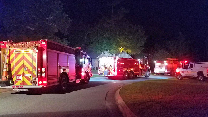 Firefighters responded to a home on Marsh Elder Drive off Nine Mile Road Monday night. The resident came home to discover smoke in the home and called 911. There was no immediate word on the cause of the smoke and no major damage reported. The Ensley, Cantonment, Ferry Pass, Beulah and Bellview stations of Escambia Fire Rescue responded. NorthEscambia photos by Kristi Barbour, click to enlarge.