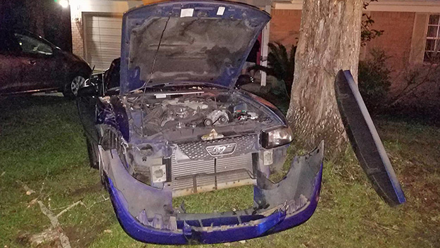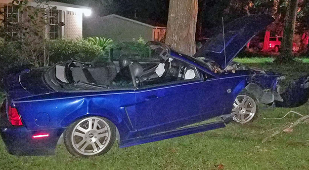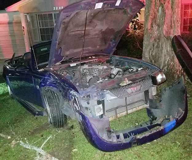 A passerby noticed the wrecked vehicle in the front yard of a home in the 2000 block of Old Chemstrand Road about 12:45 a.m. Saturday.