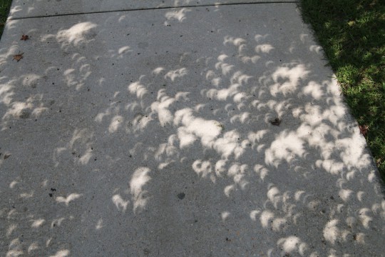 The photo below was taken by Ditto Gorme for NorthEscambia.com at 1:30 p.m. in Atmore. The photo at bottom shows the unique shadows cast on a sidewalk in Bratt during the eclipse.