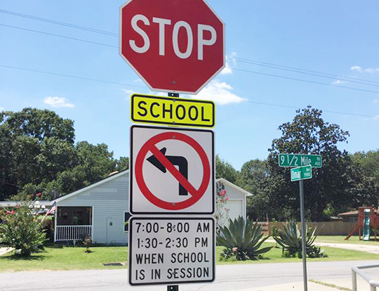 During the hours of 7-8 a.m. and 1:30-2:30 p.m. on school days, There is now no left turn leaving campus onto Omar Avenue or entering campus from 9 1/2 Mile Road.