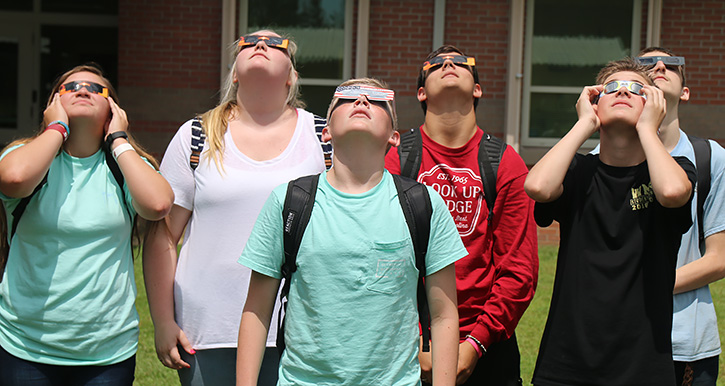 Pictured above: Students at Northview High School in Bratt, FL, watch the eclipse. NorthEscambia.com photo, click to enlarge.