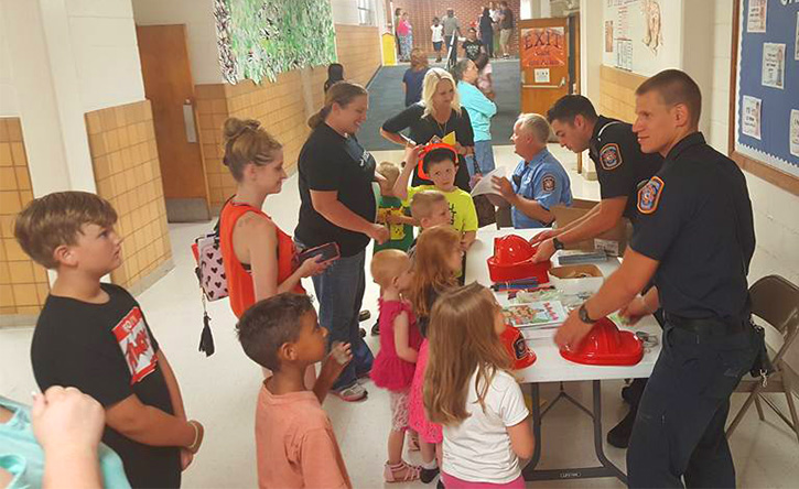 Escambia Fire Rescue firefighters attended open house events at 12 elementary schools Thursday evening to promote fire safety and the county’s free smoke detector program.