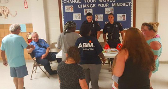 Pictured: Firefighters from Engine 4 of the Cantonment Station of Escambia Fire Rescue explain the county’s free smoke detector program Thursday evening at Jim Allen Elementary School. Courtesy photos for NorthEscambia.com, click to enlarge.