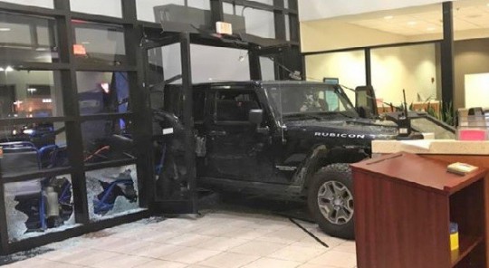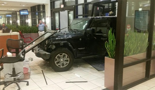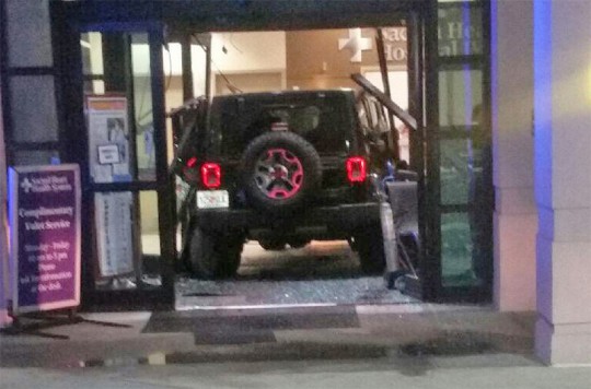 Pictured: A Cantonment man crashed his Jeep into the Sacred Heart Emergency Room August 17 in what police said was a domestic violence incident. Photos courtesy WEAR 3 for NorthEscambia.com, click to enlarge.