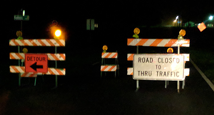 Pictured: Temporary barricades (above) were replaced (below) as the Arthur Brown Road bridge over Boggy Creek was officially closed Wednesday night. Photos for NorthEscambia.com, click to enlarge.