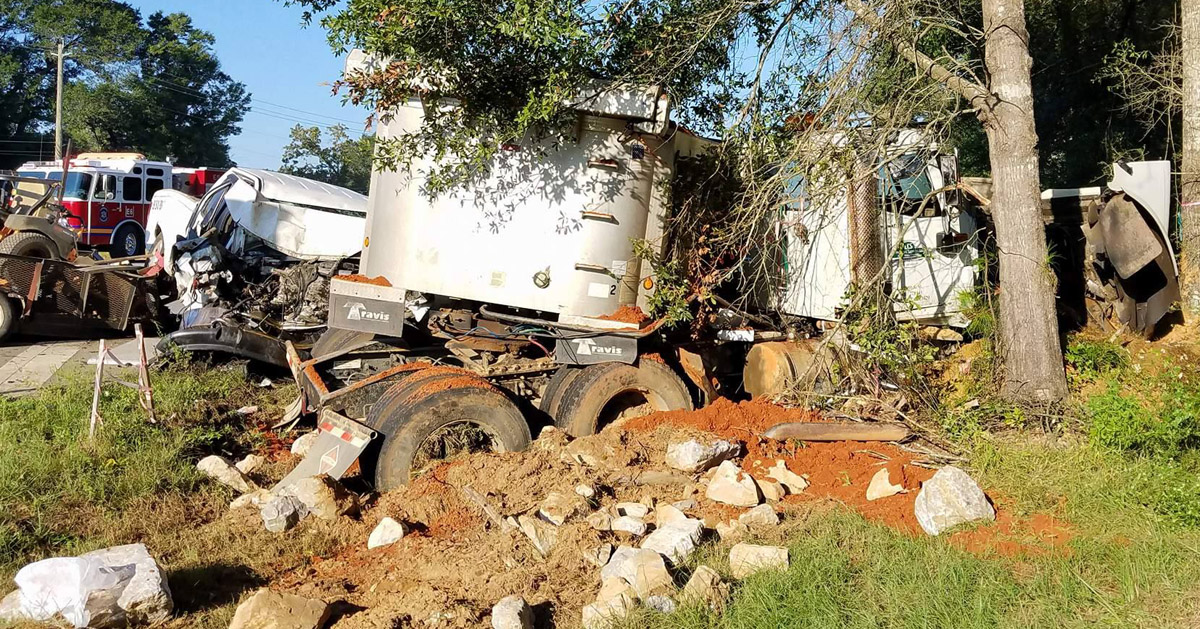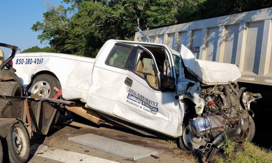 The tractor-trailer continued where it collided with a Ford F150 lawn service truck driven by 54-year old Roy D. Grissom of Pensacola before jackknifing and hitting a tree.
