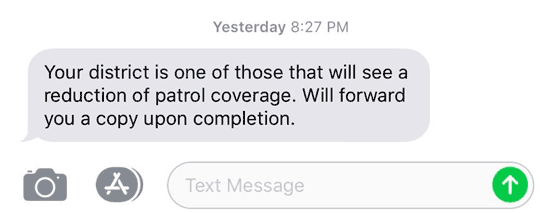 Sheriff Texts Three Commissioners: Expect Patrol Cuts In Your District