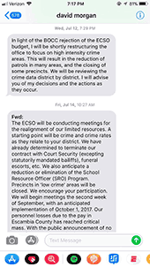 Barry said Tuesday’s text from the Morgan was not the first he had received from the sheriff during the summer budget battles, and he did not respond to any of them.