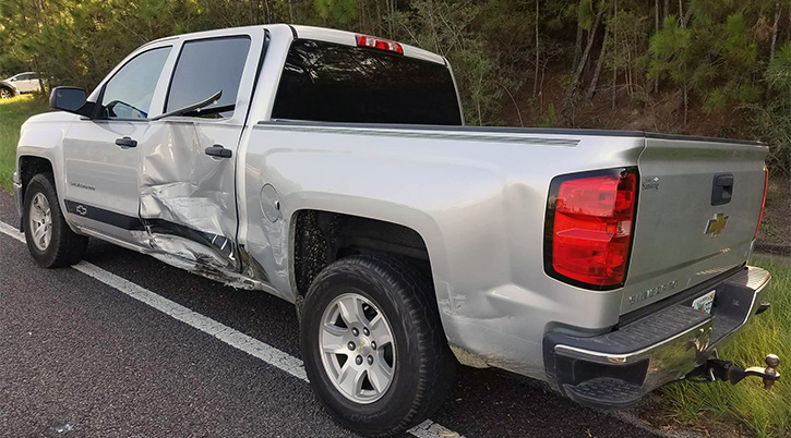 A Hyundai Sonata and Chevrolet Silverado collided in the crash on Highway 29 near Barrineau Park Road , with the Sonata rolling over into the median. The driver of the Sonata, a 16-year old female, was transported by Escambia County EMS to a Pensacola hospital as a “trauma alert”. Authorities said she was wearing her seat belt.