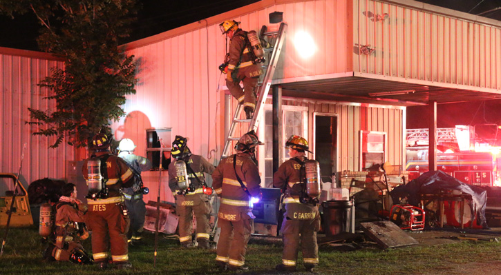 Passersby reported smoke and flames to be coming from the roof and door of the former used car lot building at the corner of North Century Boulevard and East Cottage Street about 9:50 p.m. The fire was quickly brought under control with moderate damage to the 1,080 square foot building.