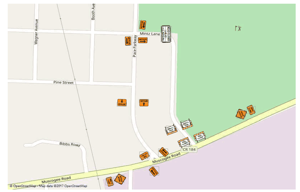 Traffic will be detoured via Pace Parkway. The closures/detours are expected to remain in effect for approximately one day.