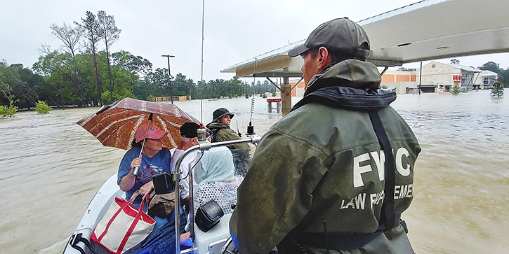 Florida Fish and Wildlife Conservation Commission (FWC) officers are continuing to actively assist with disaster response efforts in the Houston area. FWC officers have rescued more than 500 Texans since arriving in the area after being deployed by Governor Scott in response to Texas’ request for emergency assistance. Additionally, more than 400 Florida volunteers have been deployed to Texas and Louisiana as Volunteer Florida continues to coordinate the activities of 11 disaster relief organizations.