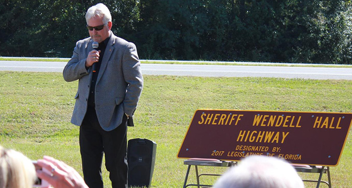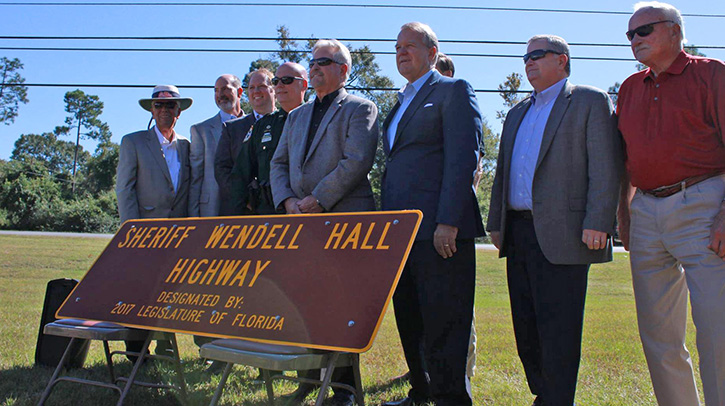 A portion of Highway 90 from Chumuckla Highway to Woodbine Road in Pace was designated as the “Sheriff Wendall Hall Highway” during a ceremony Monday to honor former Sheriff Wendell Hall.