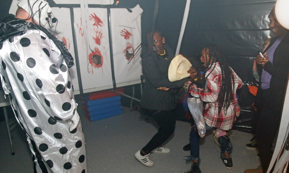 They enjoyed a chance to trick or treat through the library where surprises lurked among the shelves, a hair-raising tour of the Molino Museum and a “Mad House” with a scary clown, mad scientist and other frightening surprises for the older kids and adults.