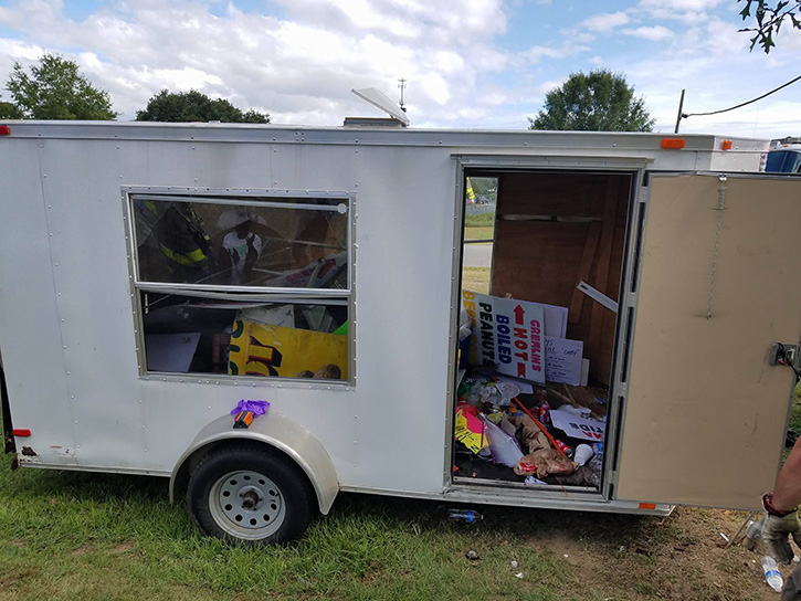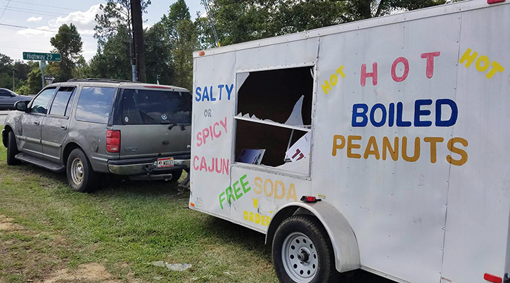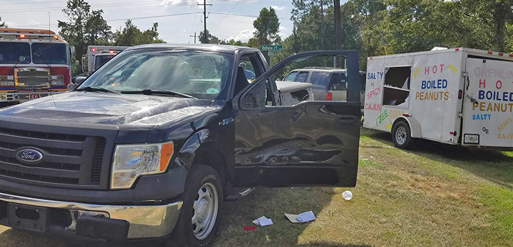 Pickup Runs Off Road, Hits Peanut Vendor’s Trailer