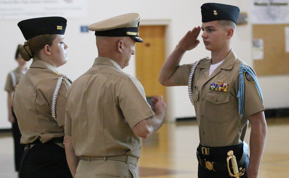 The inspection includes a uniform inspection of each of the unit’s cadets, drill team performance, cadet recognition, pass in review, unit brief to the inspecting officer and awards.