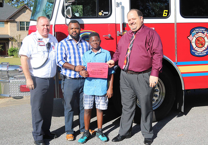 Otabil was one of six winners in the West Florida Public Libraries’ Summer Reading Club contest to receive a firetruck ride to school. The firetruck rides were the prize for children ages 6-11 who read more than 50 hours during the Summer Reading Club, which ran from May 30 through July 31.