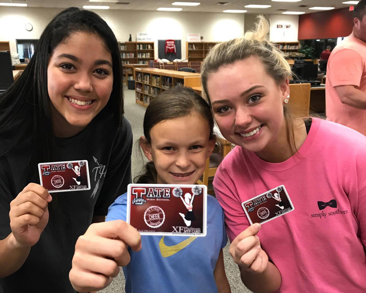 Pictured above: Sherrie Swenson, Hagyn Helton and Kally White with the Tate Cheerleader Discount Card. Photo for NorthEscambia.com, click to enlarge.