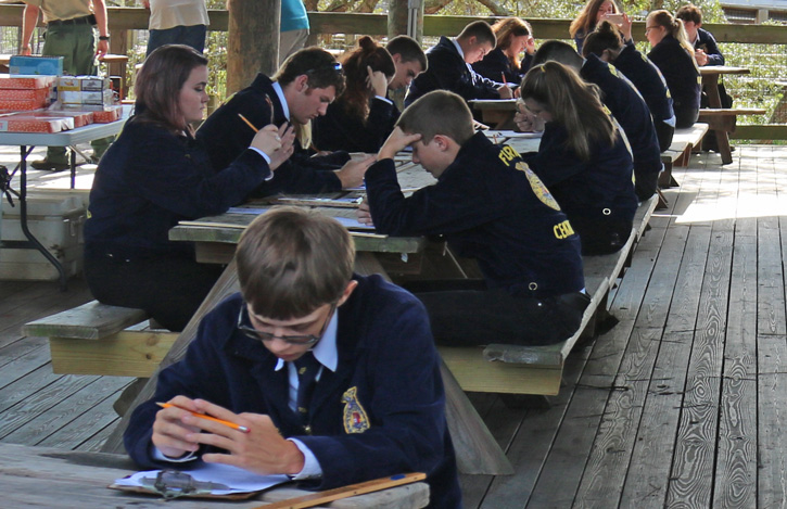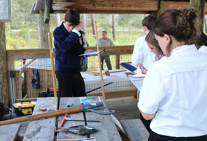 Teams competed in six areas — general knowledge; timber cruising to measure timber and determine merchantability; equipment identification to name tools and heavy equipment used in the forestry industry; tree identification naming different species of common trees in Florida; and forest disorders to identify diseases and bugs that infect trees in Florida.