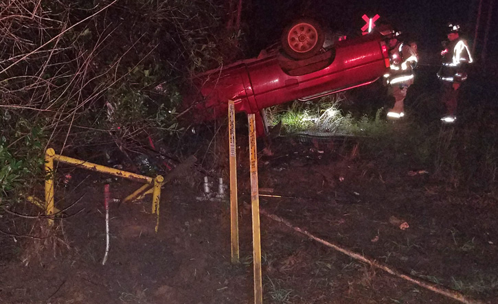 The accident happened about 7:30 p.m. on Wolf Log Road near Jordan Road. The driver escaped their overturned vehicle without serious injury.