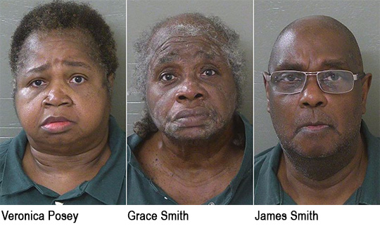 Deputies responded to the 300 block of Bryant Road Saturday afternoon. The Escambia County Sheriff’s Office said a child was transported to a local hospital and later died there. Deputies arrested Veronica Posey, 64, Grace Smith, 69, and James Smith, 62, all of Pensacola in connection to the child’s death.