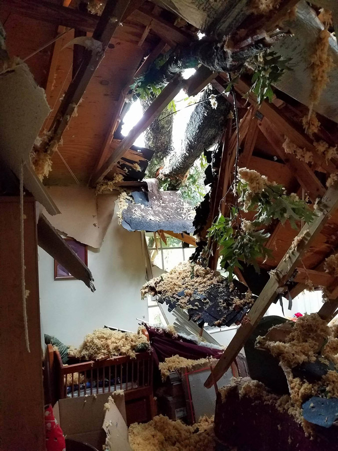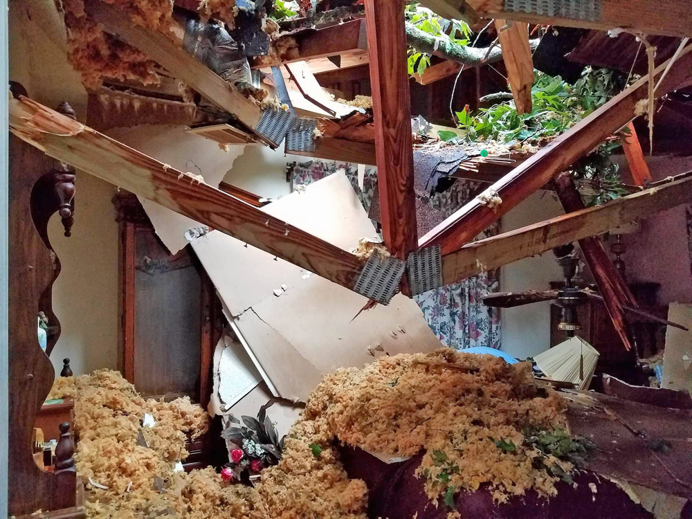Pictured: A Cantonment woman escaped injury when a large tree fell into her home due to Hurricane Nate – one of the very few damage reports received from the storm in the North Escambia area. NorthEscambia.com file photos.