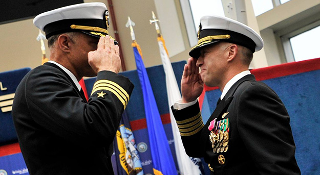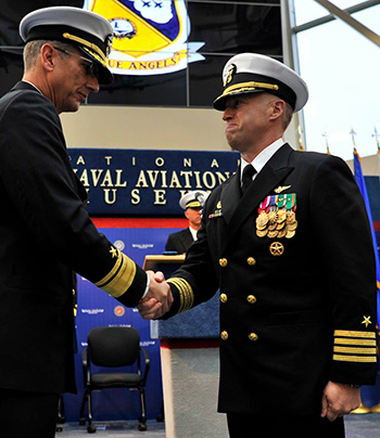 Cmdr. Eric Doyle relieved Capt. Ryan Bernacchi as Blue Angels commanding officer/flight leader and spoke of his optimism for the future and pride in taking command of the prestigious squadron.
