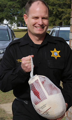 After hearing about empty shelves at a local food bank, Escambia County Jail staff members collected Thanksgiving turkeys and other food items for families in need, delivering the items Wednesday to the Epps Christian Center.