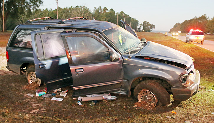 The driver of a Ford Explorer was eastbound on West Highway 4 near Dora Lee Killam Road when she lost control, left the roadway, struck a culvert and overturned. The vehicle came to rest upright on the shoulder of the road.