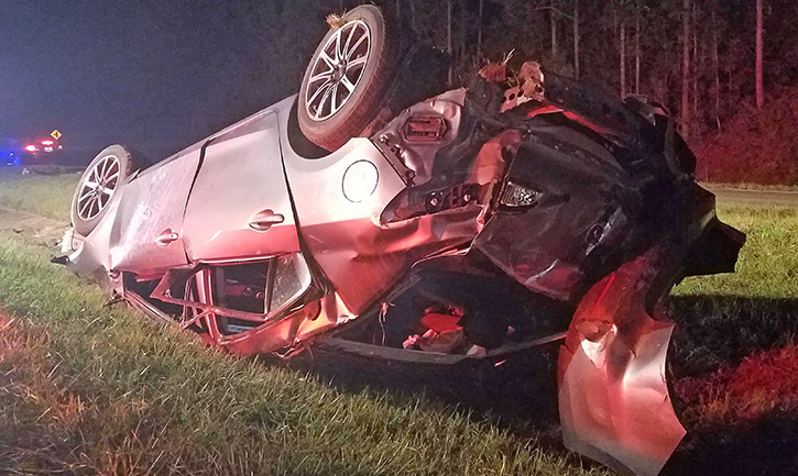 The accident happened just after 1 a.m. on Highway 29 near West Quintette Road, with the vehicle come to rest on its roof. The driver was transported to an area hospital by Escambia County EMS.