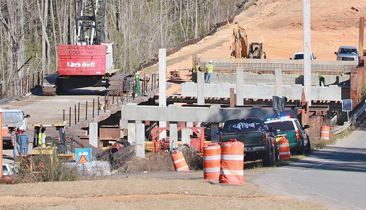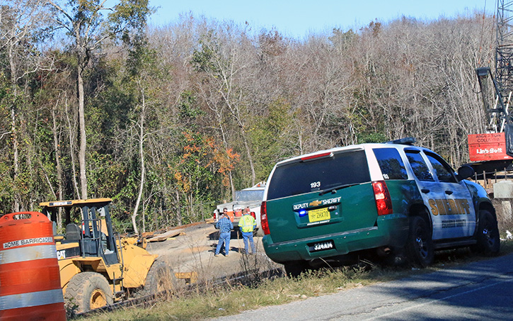 Pictured: The Escambia County Sheriff’s Office investigates the theft of two industrial welding machines from a bridge construction zone on North Highway 99 in Oak Grove Monday morning. NorthEscambia.com photos.