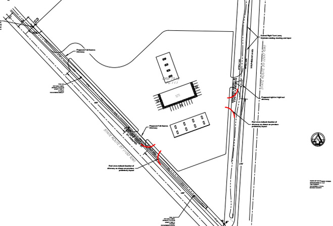 According to a letter from the construction company, the new convenience store/gas station will be constructed “with a Starbucks attached to the side”. The letter also states the owners wish to have two fueling station canopies — one for regular gasoline and the second for diesel and commercial vehicle operations.