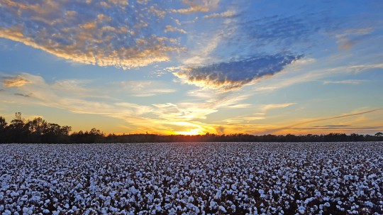 Pictured: Southern Snow — the sun sets over a field of white cotton Monday afternoon on Pine Barren Road in Bratt. NorthEscambia.com photo, click to enlarge.