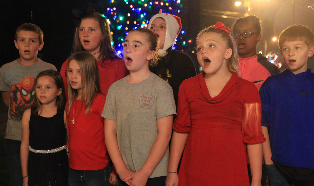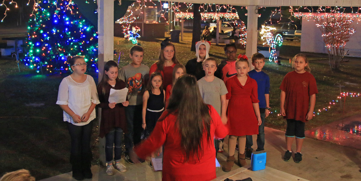 Rain could not dampen the Christmas spirit Thursday evening as the Town of Century held an official Christmas tree lighting ceremony at Nadine McCaw Park. The Byrneville Elementary School chorus led a small crowd in singing Christmas favorites under a covered pavilion. The lights are on nightly in the park, which is located on North Century Boulevard at Hecker Road in Century.