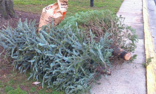 Residents wishing to dispose of organic Christmas trees can do so by simply placing the tree curbside with all decorations, ornaments and any attached tree stands removed. Trees or segments of trees should not be more than six feet in length. Do not place Christmas trees in recycling or garbage containers.