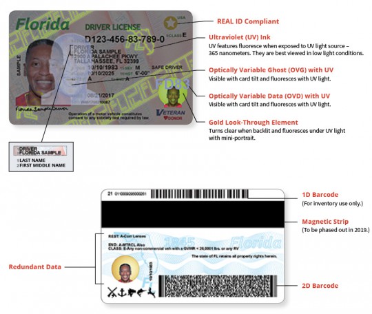 “We are in the middle of reaching out to all of our stakeholders, and letting them know how to identify the new card, this is what it looks like, these are some of the security features you can look for,” said Alexis Bakofsky, a spokeswoman for the Florida Department of Highway Safety and Motor Vehicles. “Starting January 1, 2018, it will be the only credential that is issued in Florida.”