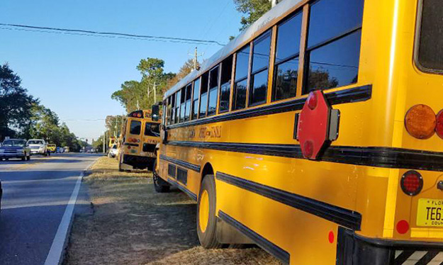 The driver of one school bus rear-ended a second school bus Tuesday afternoon on Chemstrand Road near Kingsfield Road. There were students on at least one of the buses at the time, and there were injuries reported. None of the injuries were serious.