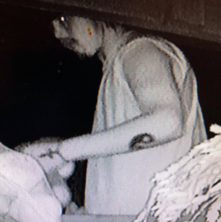 Video surveillance shows the man try to get into a cash box before stealing produce valued at about $20 from the small roadside produce stand on Highway 97 at Mason Road just before 4 a.m. Sunday.
