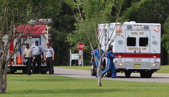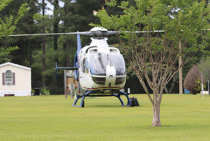 Pictured above and below: An inmate involved in a serious altercation is transported by ambulance out of Century Correctional Institution in May 2017, to a nearby medical helicopter before being airlifted to a Pensacola hospital. NorthEscambia.com photos, click to enlarge.