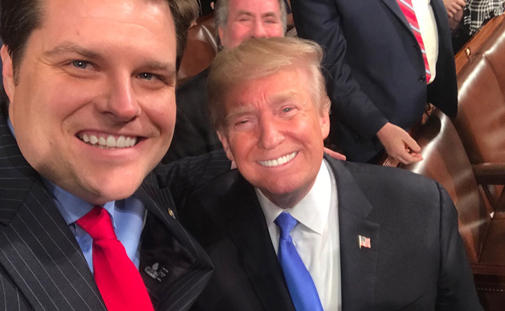 Pictured top: Northwest Florida Congressman Matt Gaetz takes a selfie with President Donald Trump following Monday’s night’s State of the Union address.