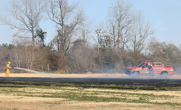 A pasture fire burned about five acres in the 7000 block of Nokomis Road, near Jakes Road, and an unrelated fire about 10 miles away burned over an acre in a sod field on North Highway 99 near the Florida/Alabama state line in Bratt.