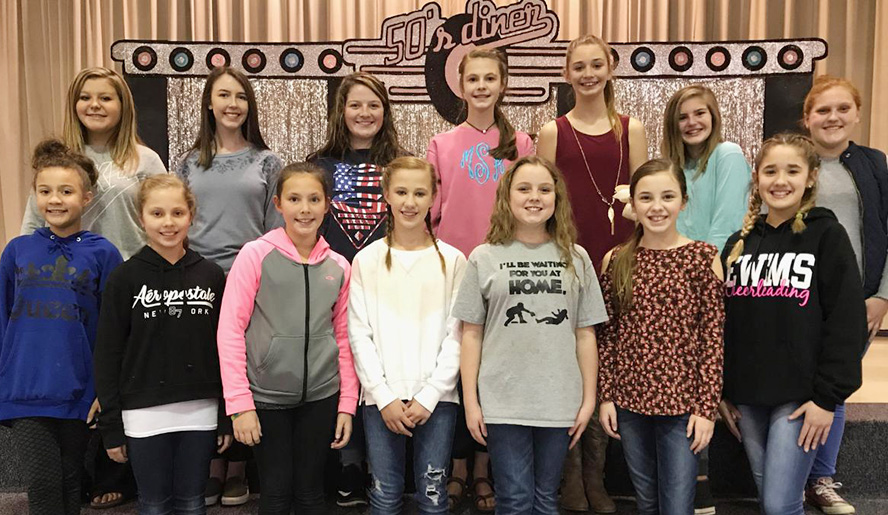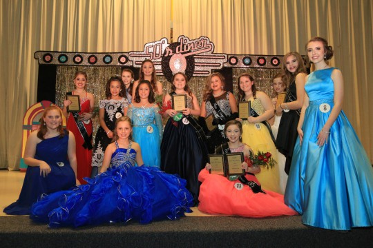 Contestants, pictured above, are (front, L-R) Saniyah McKee, Raegan Abbott, Emilee Hill, Rebekah Abbott, Chloe Ragsdale, Carsyn Dortch, Elianna Morales, (back) Jordan Wilson, Wylder Gibson, Makayla Ramsey, McKenna Simmons, Hannah Hassebrock, Addison Geck and Paige Gibbs.